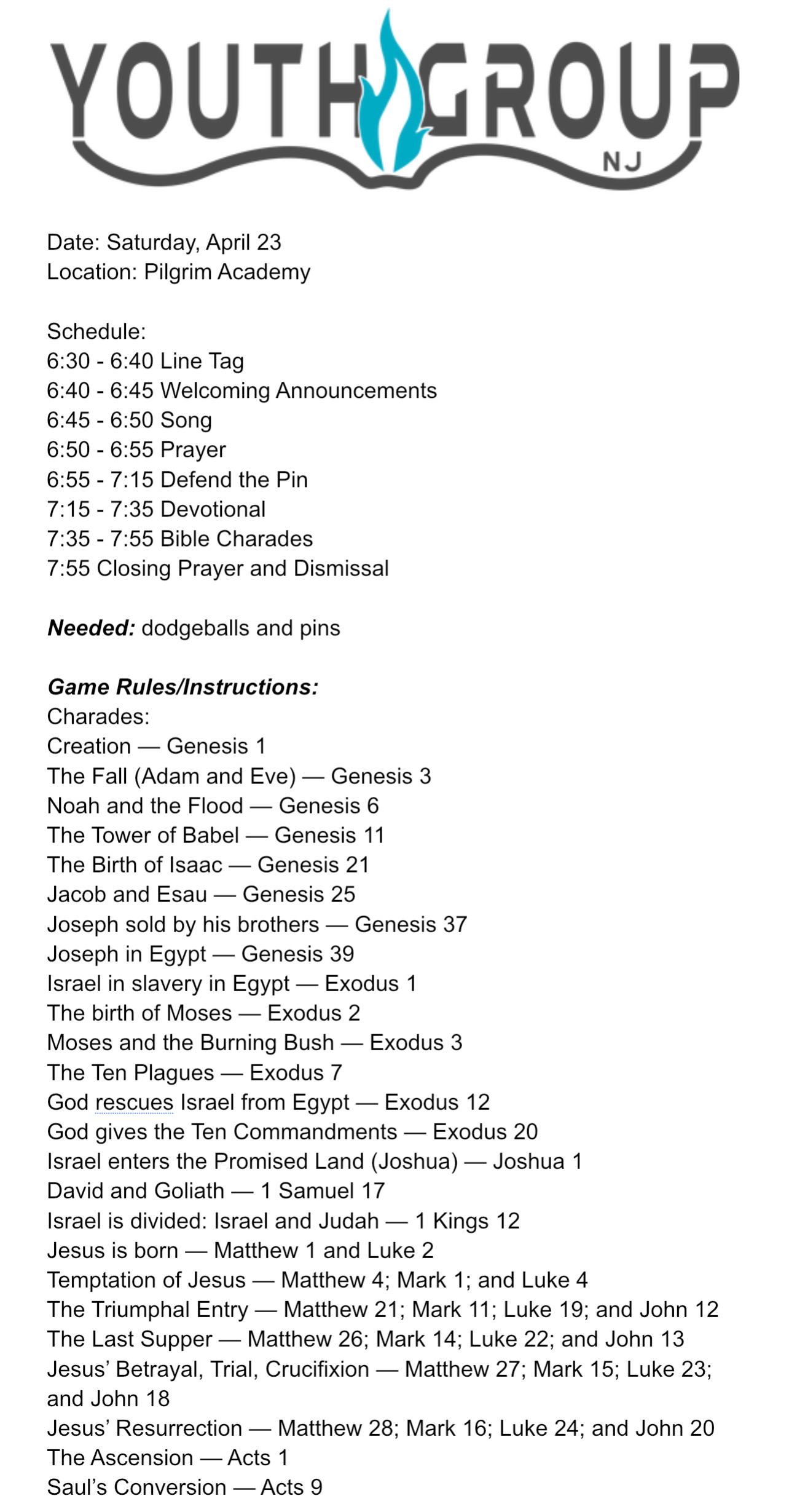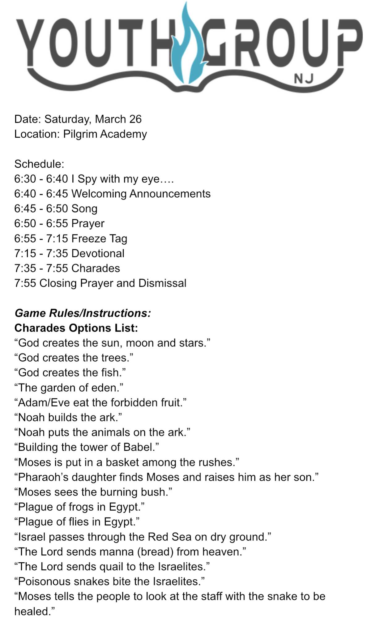 Weekly Schedule Archive